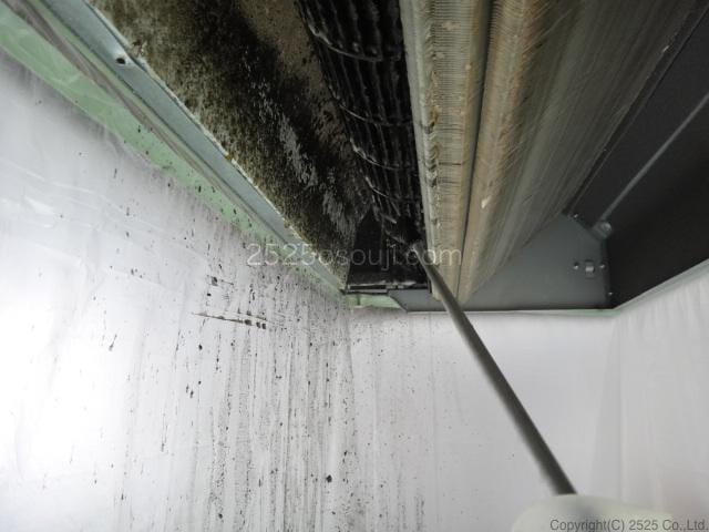 手作業では難しいファン洗浄も高圧洗浄ではファンの羽1枚1枚へ入り込んでカビ・ホコリを流してくれます。