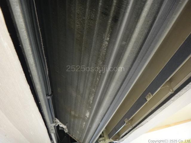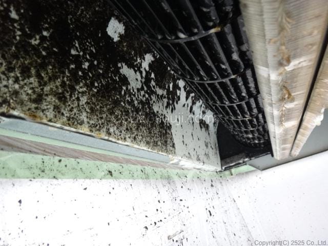 熱交換器(アルミフィン)に赤い、酵母カビが発生しています。