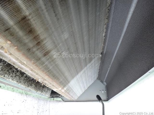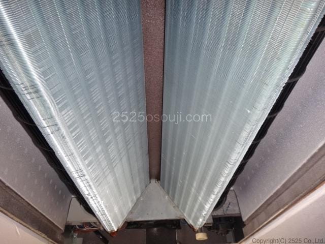本来の熱交換器アルミフィンの金属の色が見えるようになりました。