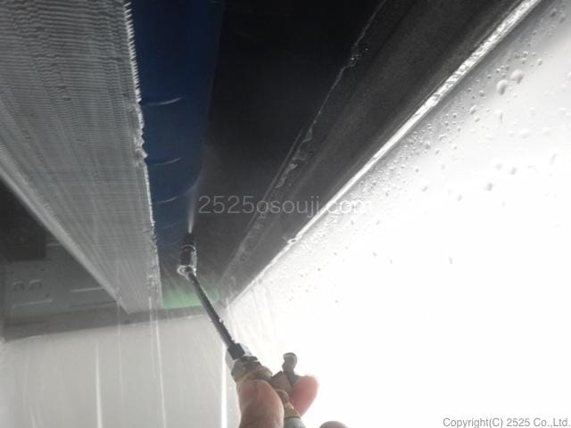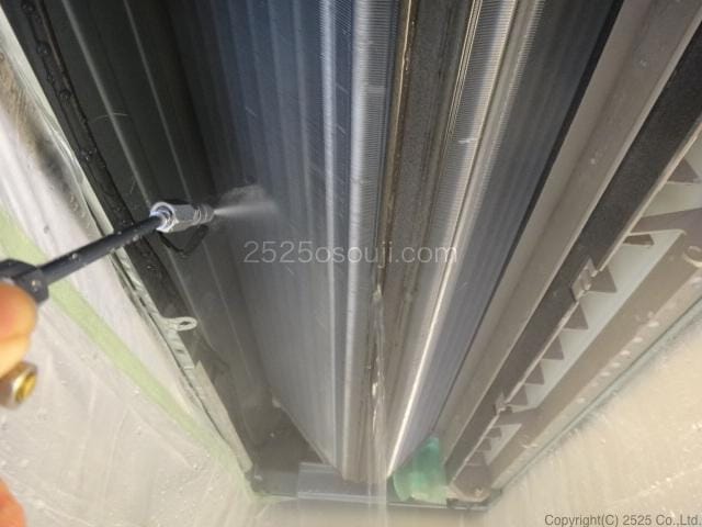 アルミフィンを痛めないよう圧力を調整して高圧洗浄します。
