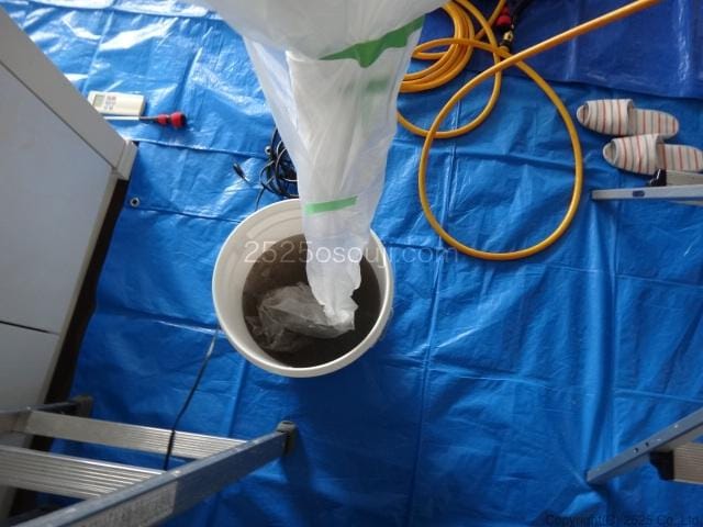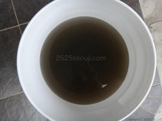 今回の汚水です。 色が黒いのはカビの発生していた証拠です。