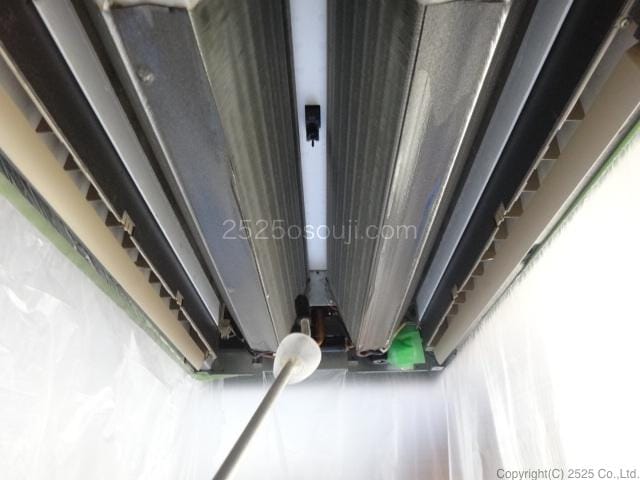 冷、温風のでる吹き出し口奥にあるファンにも奥まですみずみ洗剤噴霧をします。