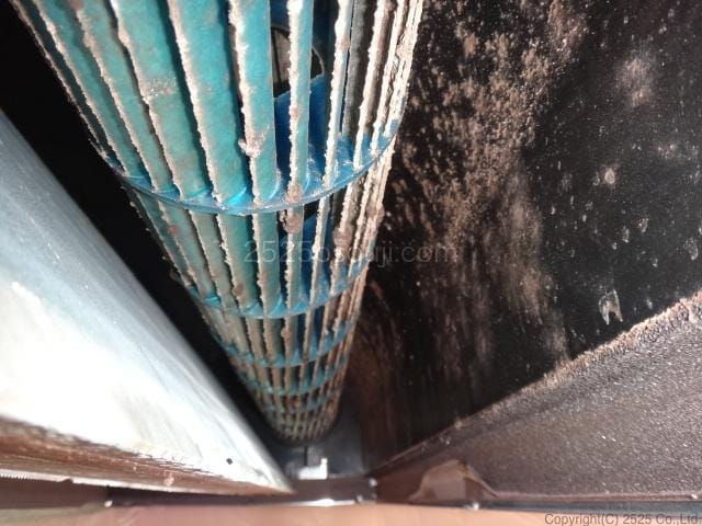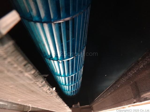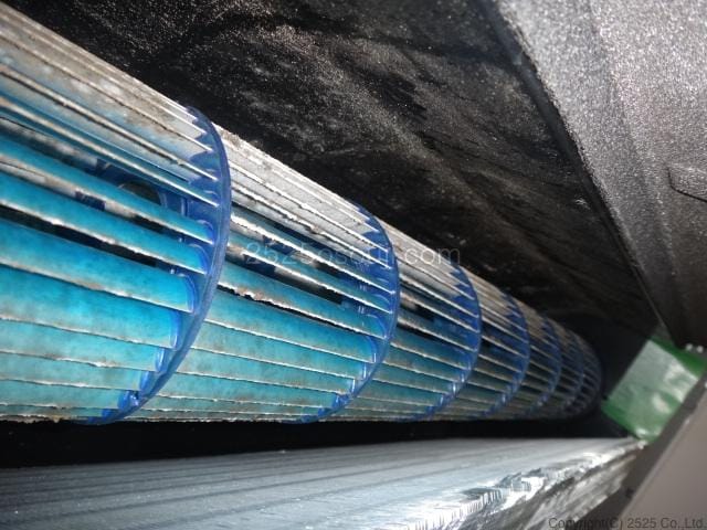 風を送る、送風ファン(クロスフローファン)にも、黒い、カビが水玉模様のように付着しているのが見えます。