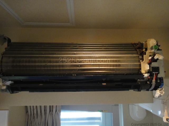 東芝製のお掃除機能付きエアコンの場合、「フィルター自動洗浄」ユニットを外すのに下の写真のような設置状況が必要となりますので、お手数ですが事前にご確認ください。 - 動作不良のエアコンにつきましては、まずメーカーさんに修理依頼されてから、お申し込みください。
