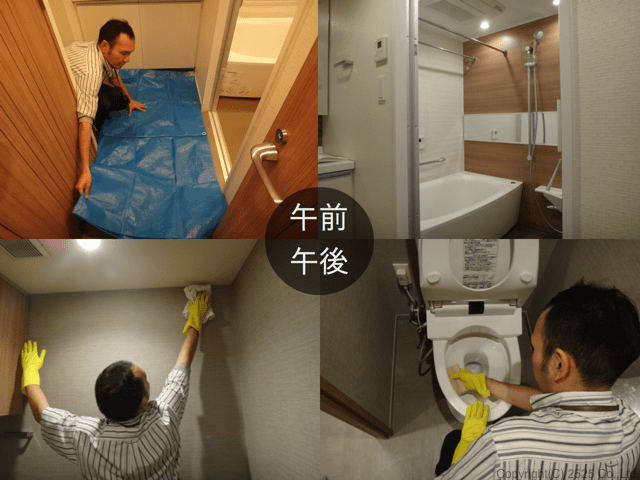 - 目安として、お風呂から作業開始の場合、トイレは午後の開始になります。