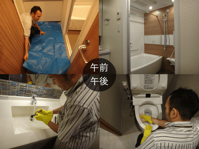 - 目安として、お風呂から作業開始の場合、トイレ、洗面台は午後の開始になります。